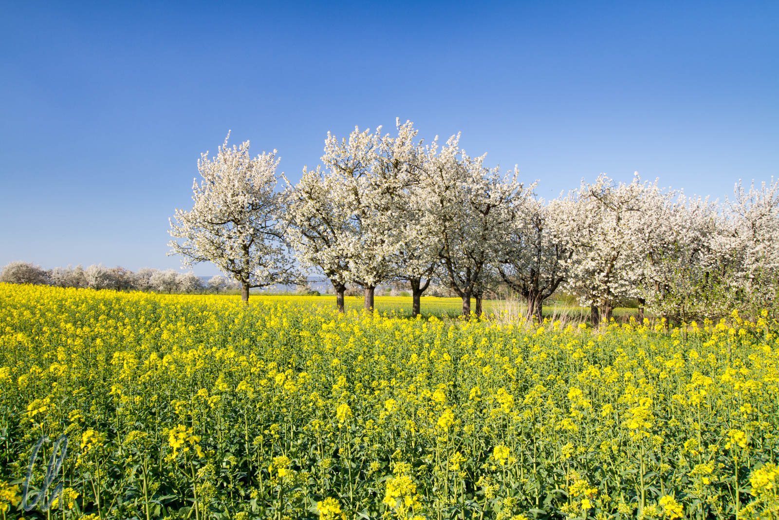 Field of rapeseed and Cherry Blossom, Koblenz, Germany Field of rapeseed and Cherry Blossom, Koblenz, Germany